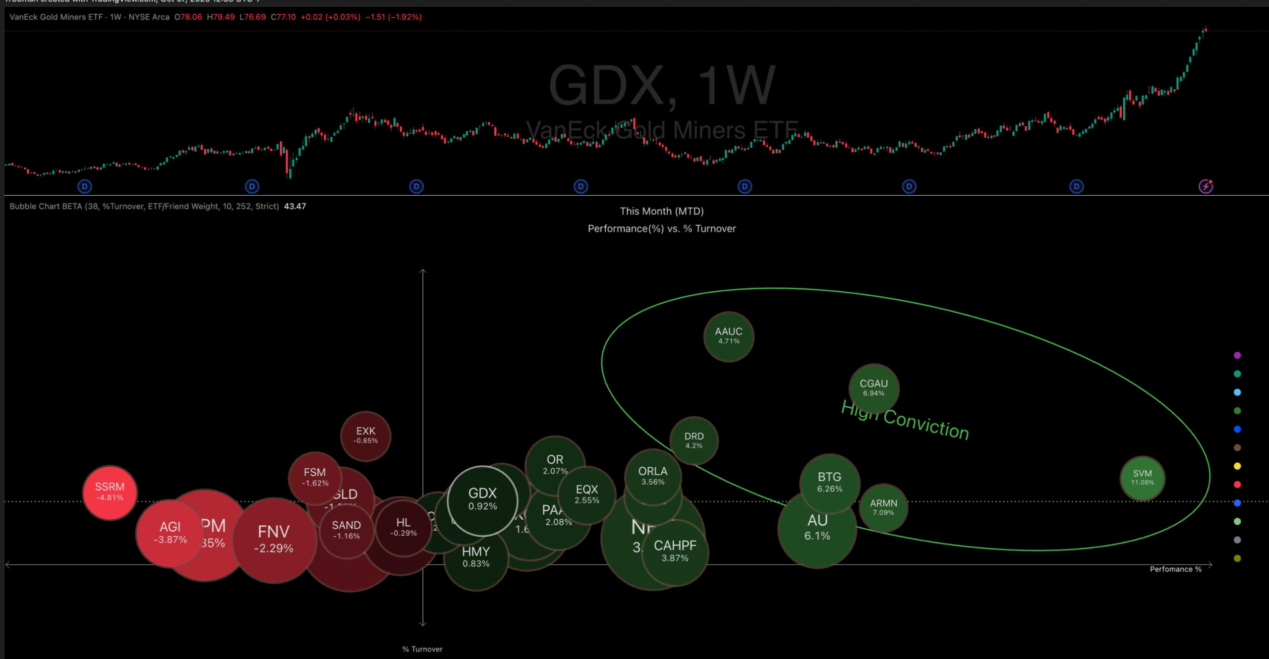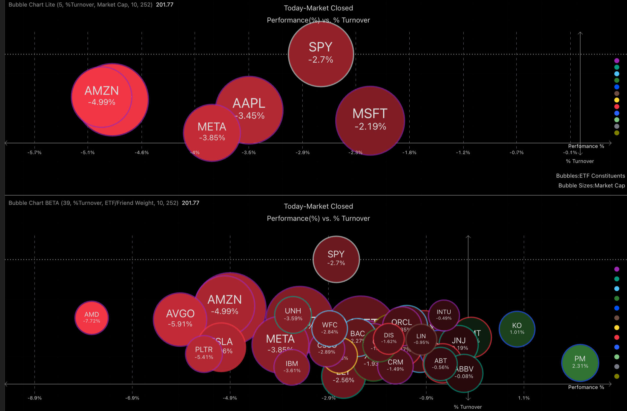 Bubble Chart maps every stock or ETF together with its most relevant peers—based on shared ETF holdings—so you can see performance, conviction, and volatility in one glance.